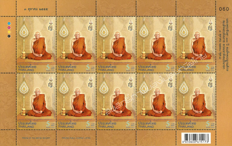 The Celebration of 100th Birthday Anniversary of His Holiness Somdet Phra Nyanasamvara, the Supreme Patriarch of Thailand, 3rd October 2013 Commemorative Stamp (1st Series) Full Sheet.