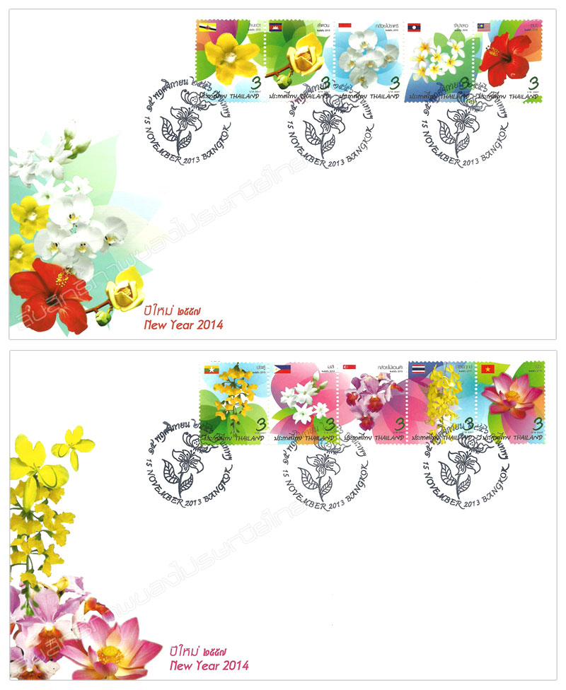 New Year 2014 Postage Stamps - National Flowers of 10 ASEAN Countries First Day Cover.
